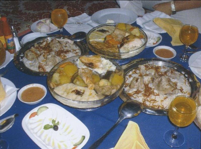サウジでは昔から太っていることは、十分に食べ物にありついて裕福である象徴という認識があり、さらに来客をもてなす時は食べきれないほどたくさんの料理をだして豊かさを示す事が習慣になっており、この食事はまさにその通りであった。